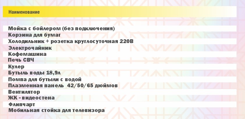 - сдача в аренду выставочной мебели и выставочного оборудования;